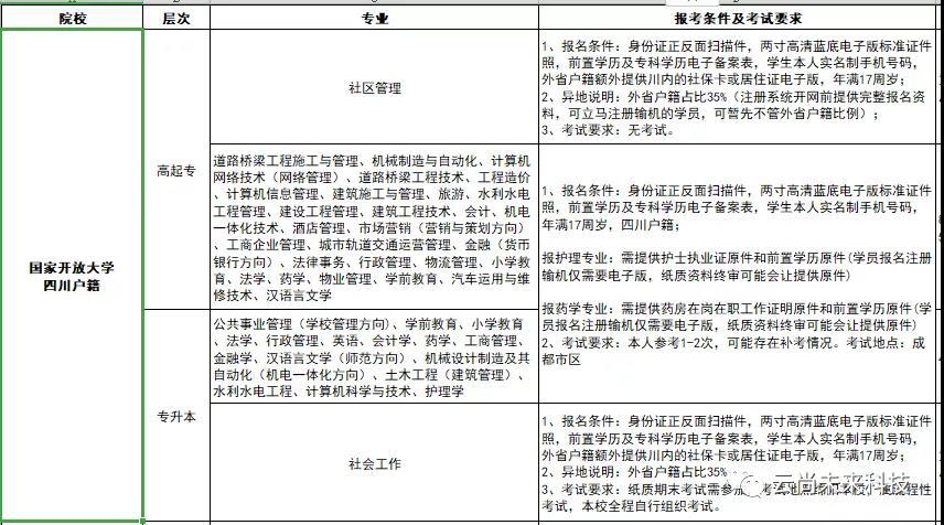 成人高考分初起专、高起专、高起本、专升本,选拔要求因层次、地域、学科、专业的不同而有所区别。学习形式存在半脱产(业余)和函授(利用空闲时间学习)两种形式。
